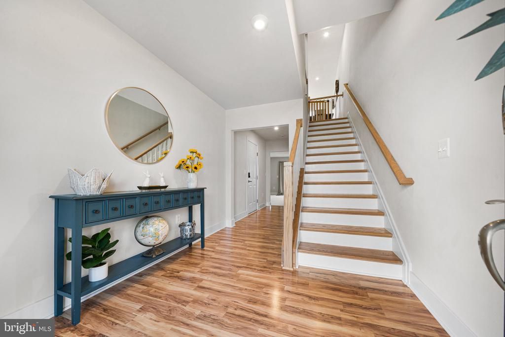 Welcome Home to this beautifully designed 3 bedroom/2 full bath/2 half bath, nearly new townhome offering the perfect blend of modern style, comfort, and convenience. Built in 2023, this thoughtfully crafted and meticulously maintained townhome features over 2,000 square feet of light-filled living space. From the moment you enter, you’ll appreciate the contemporary finishes, clean lines, and seamless flow ideal for both everyday living and entertaining. Step inside an inviting and sizable foyer that leads you to a large flex room with its own half bath, perfect for guests, family room or bonus play space. Sliding doors provide access to a private fenced backyard, which is large enough for your own play equipment. The 1-car garage houses custom storage shelving and is ideal for woodworking, gardening, your classic car, or any other hobby requiring extra space. The heart of the home is the open main level, where a stylish kitchen opens effortlessly to the dining and living areas that is perfect for hosting gatherings or enjoying quiet evenings at home. Enjoy an expansive island for breakfast or casual conversations or sit together at your table, there is room for both! With its stainless steel appliances, tall dark wood cabinetry, and beautiful quartz counters, this kitchen is the peak of elegance and functionality. Huge sliding glass doors open onto a spacious private deck, perfect for al fresco dinners or enjoying a cup of coffee in the morning. Upstairs, you’ll find a luxurious primary ensuite retreat featuring a spacious bathroom with a double-sink vanity and a large walk-in closet. Two additional well-appointed bedrooms and a full hall bathroom provide ample space for family or guests. For added convenience, a high-efficiency washer and dryer are also located on this level. Nestled in the desirable Bradley Square community, this home offers scenic surroundings—including nearby green space, a community lake and playground —along with easy access to major commuter routes, shopping, dining, and top-rated schools. Walk from your front door to the drop-off location in minutes!