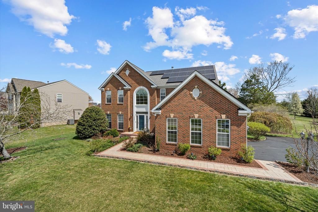 Welcome home to comfort, space, and peace of mind in this beautifully maintained 4-bedroom, 2.5-bath colonial set on a partially wooded 0.57-acre lot. Built in 2001 and offering nearly 3,000 square feet of above grade living space, this brick-front home blends timeless design with thoughtful upgrades ideal for modern living. Step inside a gorgeous 2-story foyer and continue to find 9-foot ceilings and hardwood floors throughout the first level. The heart of the home is the updated kitchen and morning room, complete with granite countertops, 42" cabinets, accent lighting, and stainless steel appliances, making meal prep and busy mornings a breeze. The family room overlooks the spacious kitchen and vibrant morning room, rounding out a space that is perfect for both everyday living and special gatherings. The adjacent deck extends your living space outdoors with views of the expansive backyard. Elegant pillars separate the living and dining rooms, and a home office/den provides a quiet space for remote work or homework. Practical upgrades throughout the home include an upgraded primary bathroom, new carpets in all upstairs bedrooms, dual-zone heating and cooling, a new high-efficiency furnace (2023), on-demand hot water, water softening and filtration systems, and fully paid-off solar panels with transferable warranties helping keep utility costs low for years to come. The partially finished basement adds over 1500 square feet of flexible living and recreational space, including an extra half bath, woodworking area, and durable epoxy floors. Additional highlights include beautifully manicured landscaping throughout yard, a 2-car garage with epoxy floors and smart openers, expanded driveway for extra parking, programmable exterior lighting, minimal HOA fees, and a newer roof(2018). This warm, welcoming home offers the space, features, and reliability today's homeowners are looking for, all in a peaceful setting designed to grow with you.