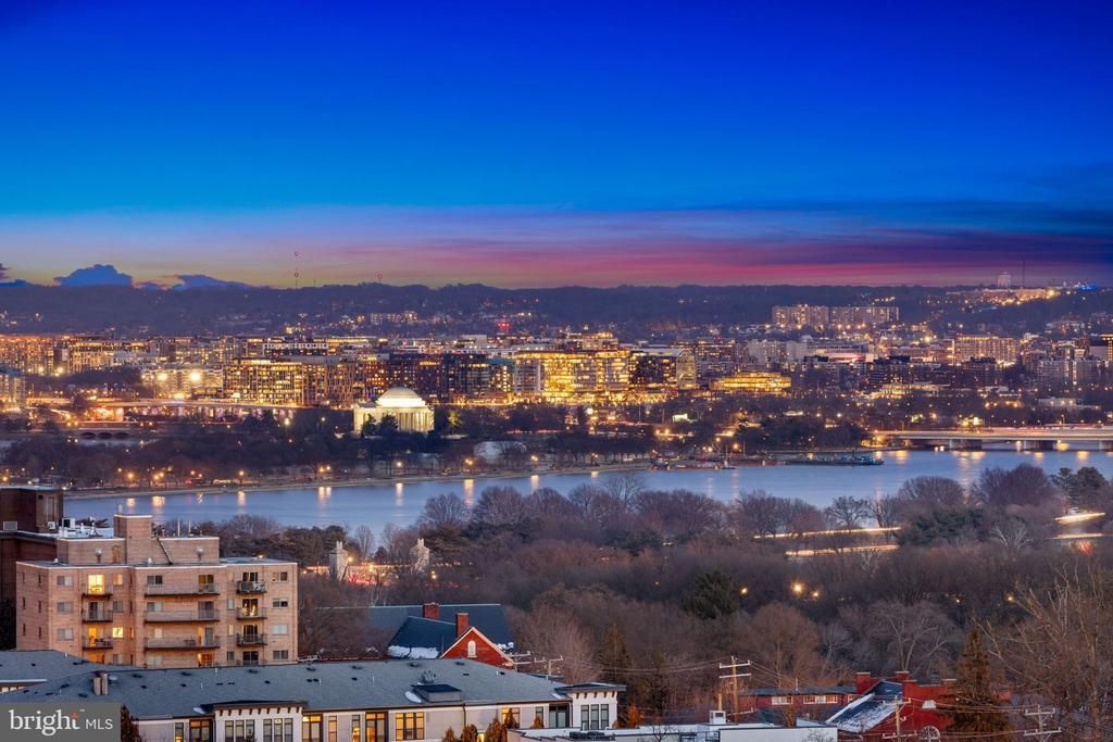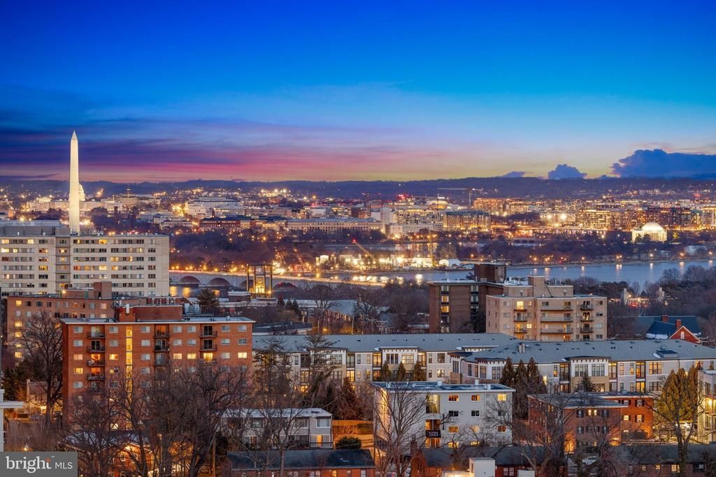 With stunning views of the DC skyline, this two-level condo penthouse offers a light-filled and spacious layout with an unbeatable and convenient location. Upon entering the main level through the foyer, there is a gourmet kitchen with a center island, stainless steel appliances including a beverage refrigerator, stacked washer and dryer and a large pantry. Back through the foyer, there is a dining room that overlooks the two-story living room with a gas fireplace, floor-to-ceiling windows across the breadth of the unit and access to a large balcony with beautiful monumental views. A powder room completes this level. Over the stairs to the upper level, there is a skylight flooding the unit with sunlight. The primary suite offers a large walk-in closet and en suite bath. There is also a second bedroom, a versatile loft area with a wet bar and a second full bath. Additional features include two assigned parking spaces and ample storage throughout the unit with two storage closets off of the balcony and another on the 18th floor hallway. Woodbury Heights amenities include an outdoor pool, fitness center, on-site management and a staffed front desk. Close to everything, Courthouse Metro is two blocks away, while Route 50 and I-66 are close by, making DC, Alexandria and Tysons an easy drive.