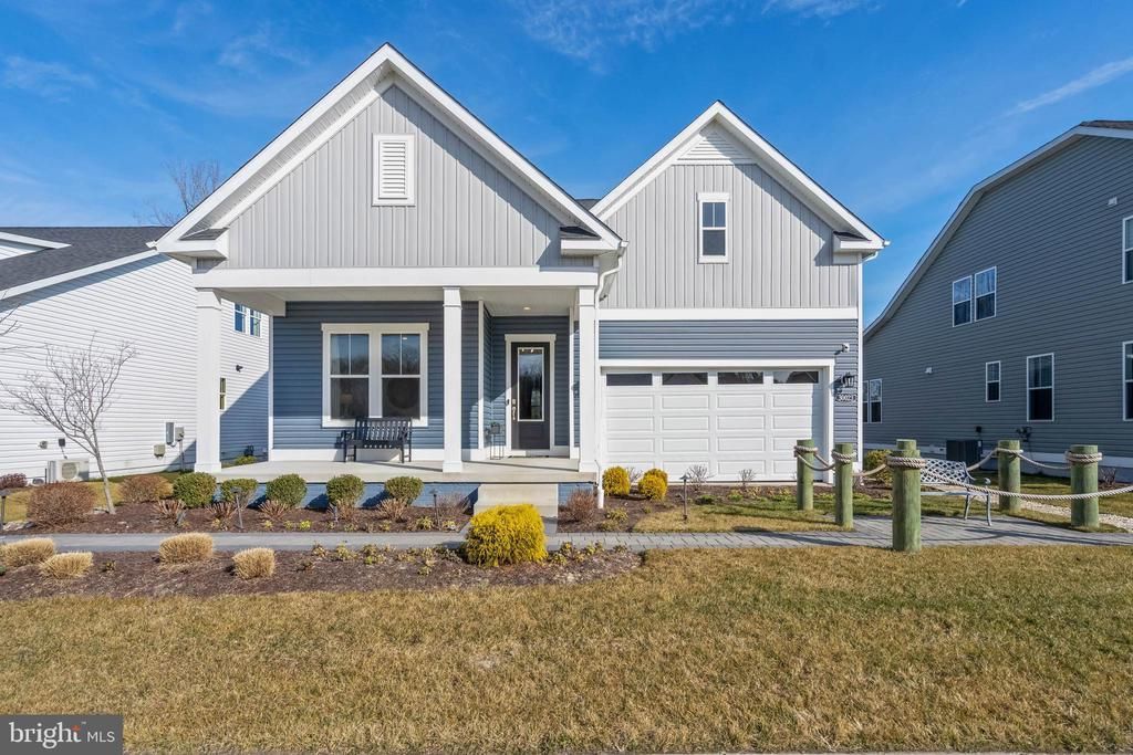 This exceptional home, currently serving as the DRB model, offers a rare opportunity to own a never-lived-in, professionally designed coastal ranch that will be fully converted by the end of April. Showcasing the highly sought-after Latitude floor plan, this home is thoughtfully decorated with custom paint & moldings as well as upscale window treatments throughout. The inviting layout features two guest bedrooms and a guest bath at the front of the home, while the private primary suite is tucked away in the rear corner, creating ideal separation for owners and guests. A stunning vaulted ceiling elevates the great room, kitchen, and dining areas, giving the home an open, airy, and grand feel, while the two-sided gas fireplace adds a touch of luxury and can be enjoyed from both the great room and the screened porch. At the heart of the home is a true gourmet kitchen, equipped with a stainless steel applianced including anatural gas cooktop, double wall ovens, a French door refrigerator, dishwasher, and microwave, and even a washer and dryer. Step through the dining room sliding glass doors to the screened porch, which is perfect for outdoor relaxation and entertaining, and continue outside to the paver patio, an ideal space for grilling or gathering around a firepit. The homesite offers peaceful pond views with a wooded backdrop, adding to the home’s serene coastal feel. This move-in-ready, never-occupied home could be yours just in time to enjoy the upcoming summer season in coastal Delaware. The primary suite features a double vanity, a large walk-in closet, and a spacious walk-in shower with a tiled seat. Chase Oaks also boasts truly unmatched resort-style amenities, highlighted by a spacious clubhouse with a large gathering area, a built-in bar with wall-mounted television, a fully equipped workout room, pickleball courts, and an incredible pool complete with cabanas and a community firepit—perfect for socializing, relaxing, and enjoying the best of Lewes living.