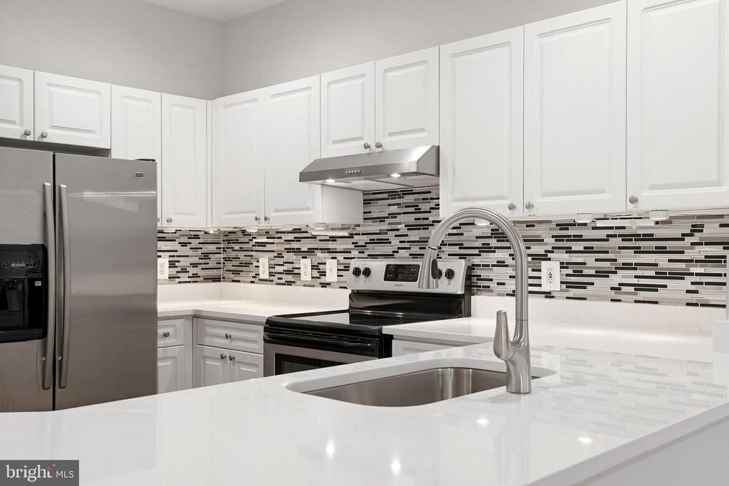 Incredibly rare, ground-level corner unit with TWO UNDERGROUND GARAGE SPACES! Secure building, no stairs, private ground-level patio overlooking beautiful courtyard and loaded with updates! This beautifully updated 2-bedroom, 2-bath home offers the perfect blend of comfort, convenience, and breathtaking views. The light-filled, open-concept layout features hardwood flooring, new recessed lighting, and fresh finishes throughout, while extra windows unique to this corner unit create a bright, airy feel. The spacious living area flows seamlessly to a private patio—ideal for relaxing or entertaining. The updated kitchen is both functional and stylish, showcasing new quartz countertops, stainless steel appliances, new single-bowl deep sink and ample prep space. Both bathrooms have been tastefully renovated with new vanities, mirrors and lighting, adding to the home’s move-in ready appeal. The primary suite serves as a peaceful retreat with its own private bath, updated with a new vanity, mirror and lighting, new recessed lighting and a large walk-in closet. The second bedroom offers a large walk-in closet, direct access to the updated second bathroom with new vanity, mirror and lighting and updated shower with seamless glass enclosure. This space offers flexibility for guests, a home office, or additional living space. Enjoy a well-maintained community with top-notch amenities including a pool, fitness center, and beautifully kept common areas. Rarely available two underground garage parking spaces, steps from the elevator! Don’t miss this incredible opportunity to own a stylish, updated condo in a prime location, so close to the Mosaic district with its shopping, great restaurant and nightlife scene. A commuter's dream location, minutes from Rt. 495, Rt. 66 and Rt. 7.
