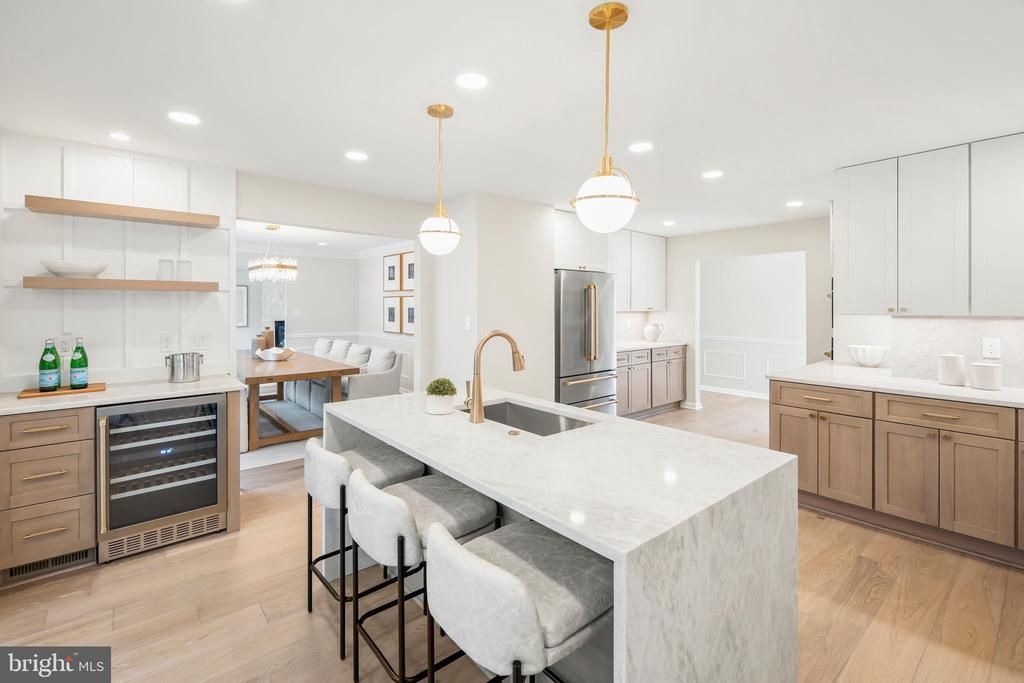 Unbelievable value for this truly special property with 5-star luxury indoor and outdoor living. Beautifully renovated in 2026, this home is tucked away on nearly one acre that features lush landscaping, a custom HEATED pool with waterfalls, a separate hot tub, multi-leveled decks, an outdoor kitchen, a charming gazebo, and a large flat lawn. <p> Beyond the beautiful and private backyard, this home offers meticulously renovated living spaces across all three levels. The interior is a true showstopper, starting with a fully redesigned and remodeled kitchen that features custom cabinetry, stunning Taj Mahal Quartz countertops with a coordinated full-height backsplash, Kohler plumbing fixtures, and premium Z-Line stainless steel appliances, including a 36-inch professional gas range. <p> And it doesn’t stop there — the family room was designed to impress.<p> Here, the ceiling lifts two full stories, and the entire space filled with light. Your eye goes straight to the fireplace wall — newly refaced with Spanish oversized porcelain tile — clean, modern, and scaled to match the height of the room, with the chandelier suspended perfectly to define the space. Along the back wall, a built-in bar adds to the setting for gatherings and entertaining. <p> From here, the space opens directly into a sunroom filled with natural light, where skylights and a full wall of windows keep the backyard in constant view and extend the living space outdoors.<p> The rest of the main level moves easily between everyday living and more formal moments. The living room is filled with natural light, with a large window that pulls your attention out to the pool, and it connects directly into the dining room. In the dining room, a full wall of windows keeps the backyard, decks, and water in view, so the setting becomes part of the interior space. <p> Upstairs, the primary suite becomes your own little world — spacious, bright, and anchored by a wall of custom millwork with a built-in bar and wine cooler, a custom detail fully integrated into the space. The spa-inspired primary bath has been fully remodeled, and it features a high-end double vanity, Kohler plumbing fixtures, and modern lighting. Three additional bedrooms and a fully remodeled hallway bath complete the upper level. <p> Downstairs, a large entertaining area provides direct access to the pool and outdoor living space. This level also includes a bedroom and a full bath.<p> Set on a quiet street in Saddlebrook Estates, the location balances privacy with access. Tysons is minutes away for shopping, dining, and day-to-day convenience, with quick connections to Route 7, I-495, the Dulles Toll Road, and the Silver Line Metro. --> Recent Fairfax County school boundary updates do not affect this property — it remains within the <b> Langley High School pyramid </b>. For full details, refer to the Fairfax County Public Schools boundary review. <p> Major updates and features include a brand-new kitchen, fully remodeled baths, main level new hardwood floors, pool was professionally repainted (Apr. 2026), new heating system for the pool (2026), roof and gutters (2025), whole-house generator, new interior paint, new attic insulation, and more. Please request a full list of upgrades from your agent. <p>